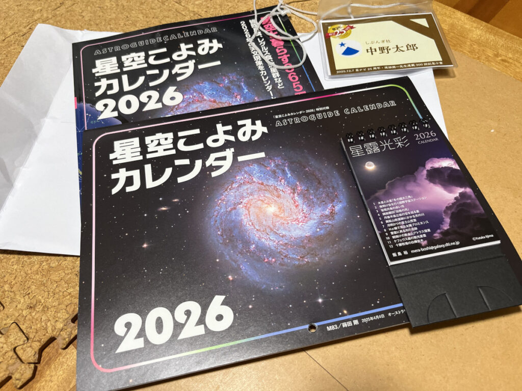 「星空こよみ ASTROGUIDE CALENDAR 2026」とムック版「星空こよみカレンダー2026」もお土産にいただいた。星ナビでコラム「銀ノ星」を連載されていて、個人的にお仕事でお世話になったこともある写真家の飯島裕さんからは、カードサイズの卓上カレンダーをいただいた。小さくてすごくお洒落。