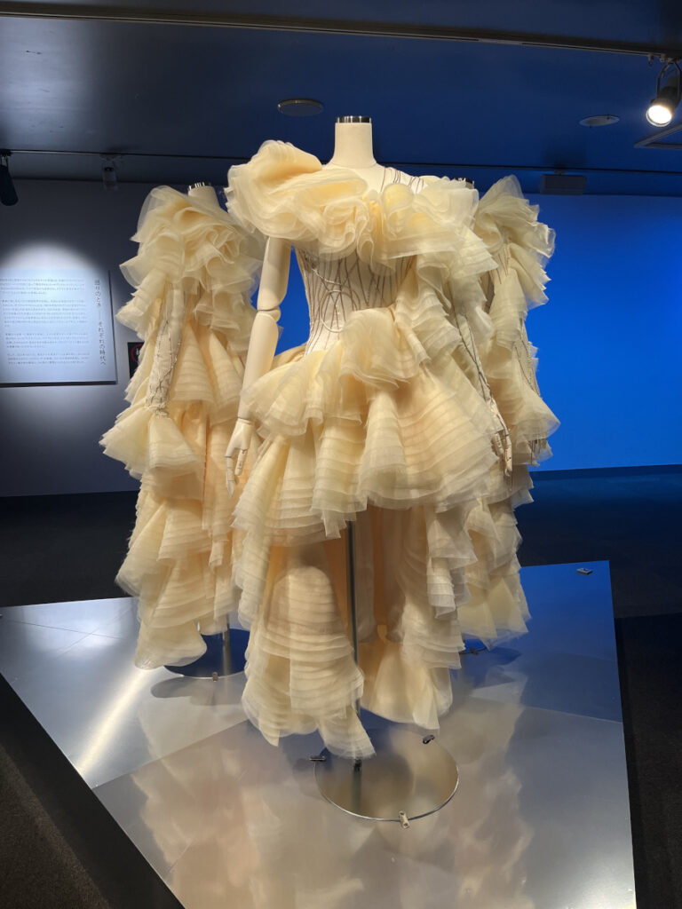 衣装の展示は何度か見ているが、見どころが詳しく説明されているので面白い。布パーツの膨大な点数や裁断・縫製の精度など、既製服とは全く違う世界であることが素人の自分にも分かった。Cling Cling の髪飾りの繊細さも凄かった。1000年後には正倉院宝物になりそう。
